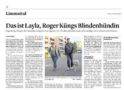 Roger Küng, Dirigent des Tambourenkorps der Stadtjugendmusik Dietikon, läuft mit Layla selbstständig von Geroldswil nach Dietikon.